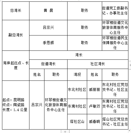 环翠楼街道办事处湾长制办公室组成人员名单