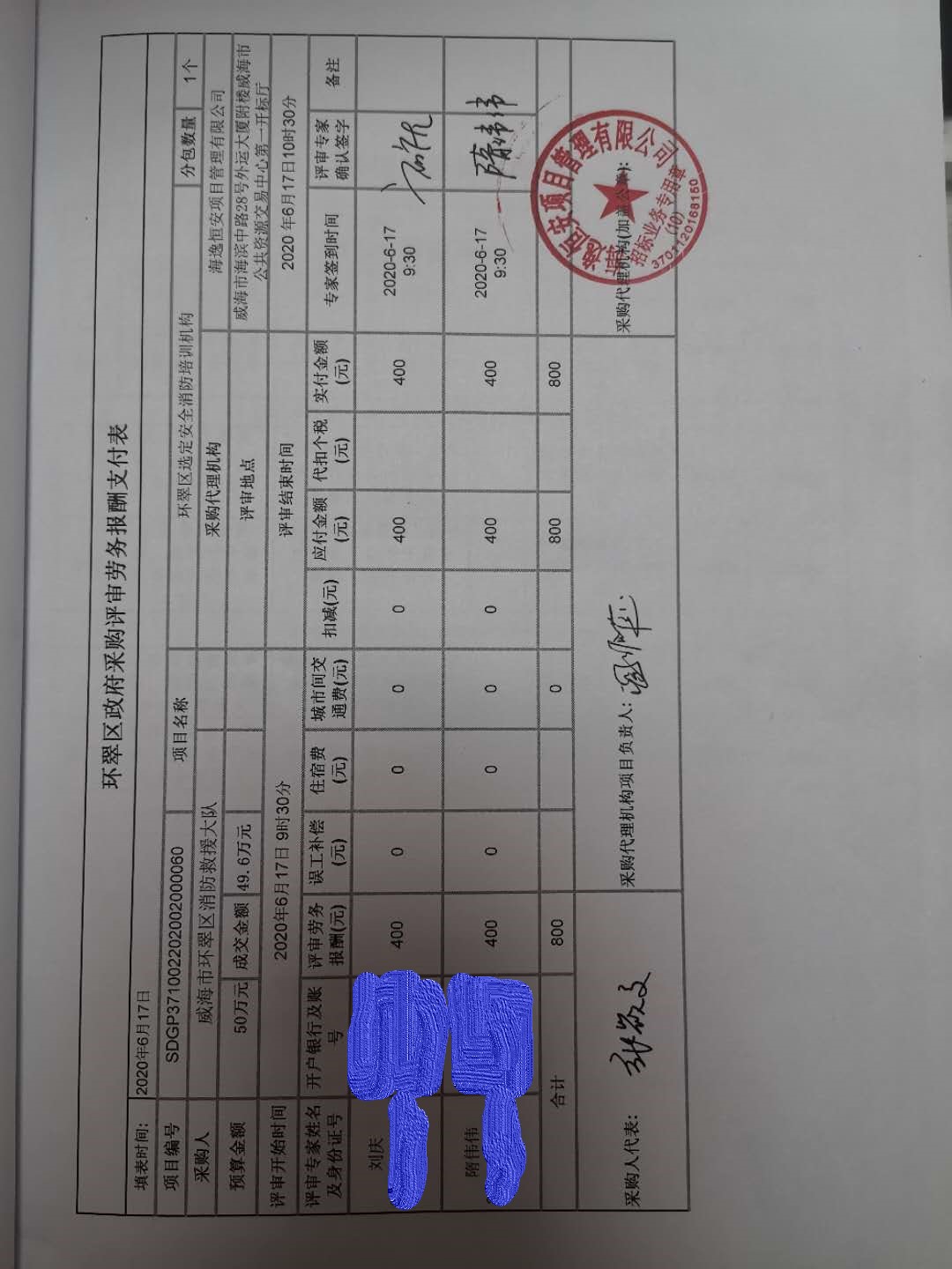 | 二、采购项目名称:环翠区选定安全消防培训机构 | |||||||||||