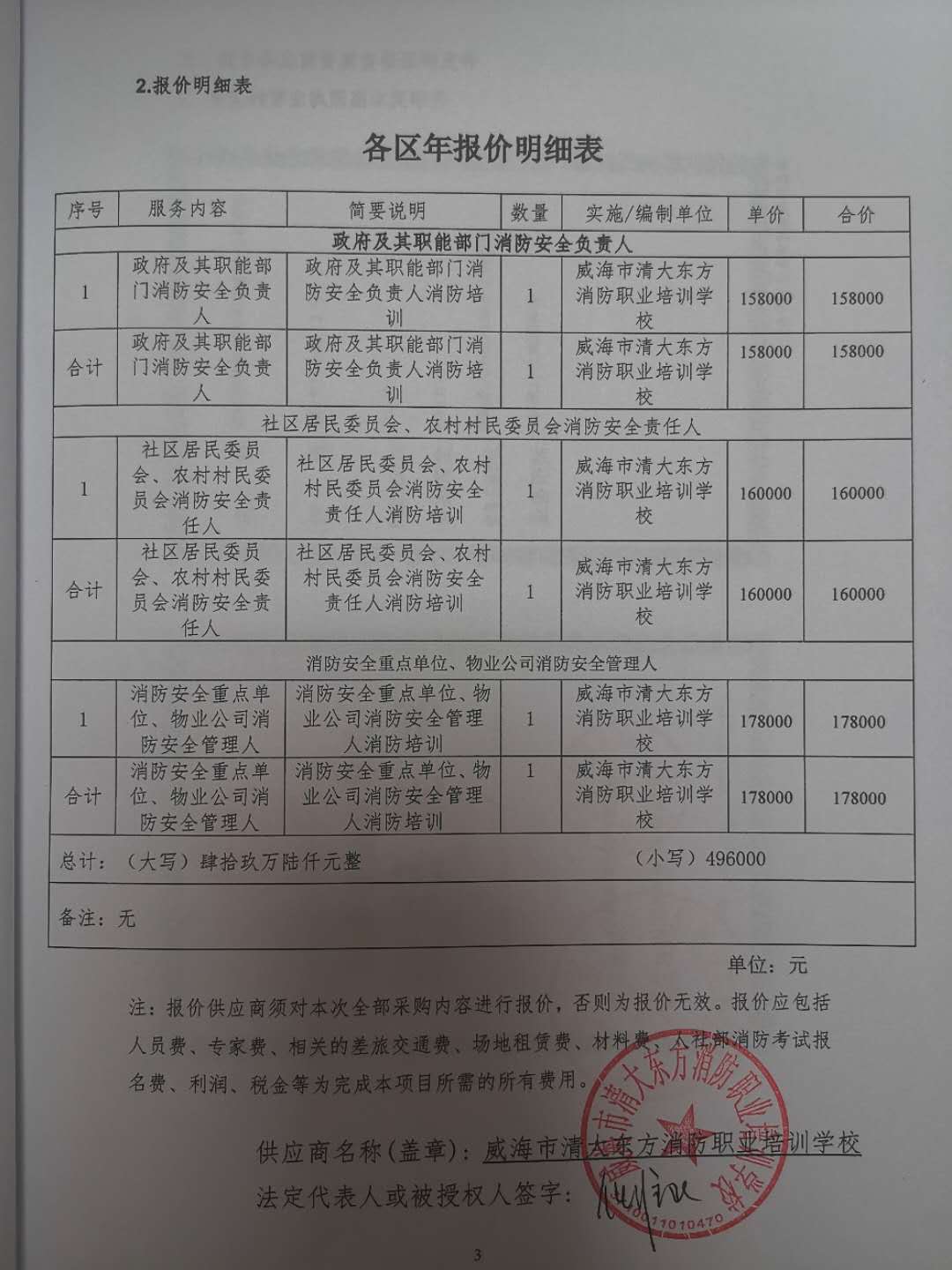 威海市环翠区消防救援大队环翠区选定安全消防培训机构成交公告 | |||||||||||