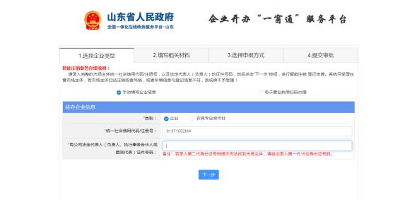 2. 选择企业类型,简单填写基本信息。