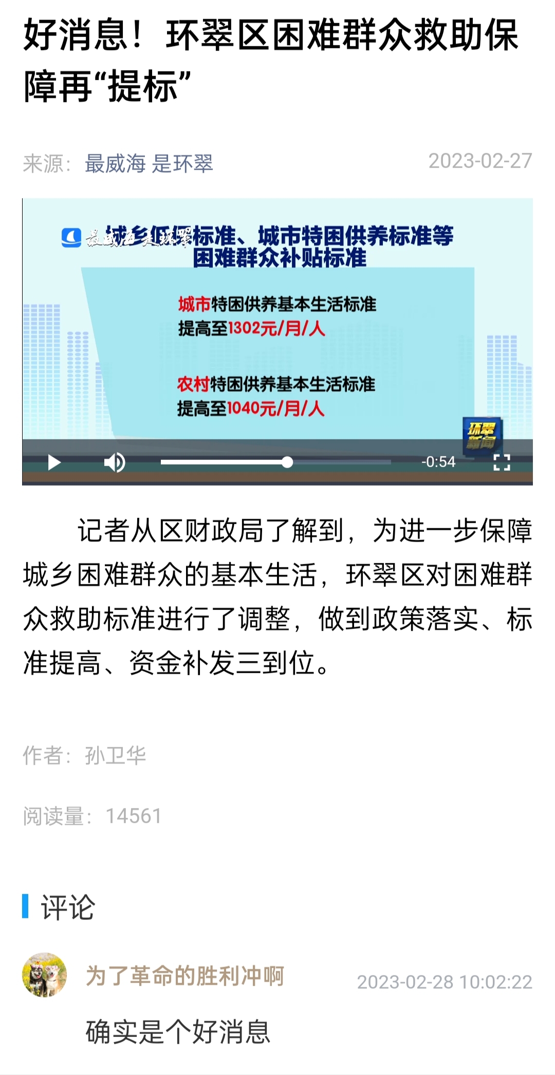 2023年环翠区对困难群众救助标准再度进行调整,加大了对城乡困难群众基本生活的保障力度。为进一步释放政策红利,解决群众对政策了解不充分、不及时的问题,环翠区财政局借力政务公开,从“人找政策”变为“政策找人”,做到“三个到位”,牢织民生“安全网”。