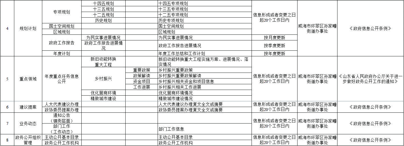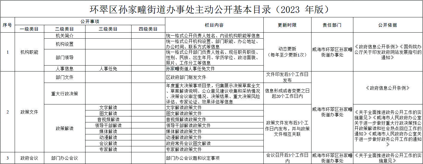 环翠区孙家疃街道办事处主动公开基本目录(2023 年版)