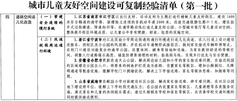 近日,由住房城乡建设部办公厅、国家发展改革委办公厅及国务院妇女儿童工作委员会办公室联合印发的《城市儿童友好空间建设可复制经验清单(第一批)》中,我区在道路适儿化改造领域榜上有名,成为典型经验在全国范围内进行宣传推广。