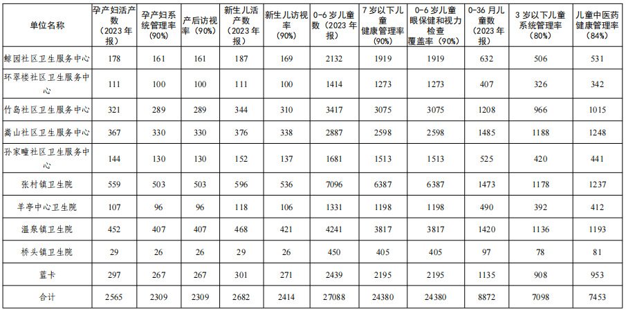 (四)孕产妇健康管理。加强孕产妇保健管理,孕产妇早孕建卡率≥90%,产妇产后访视率≥90%,孕产妇系统管理率≥90%。