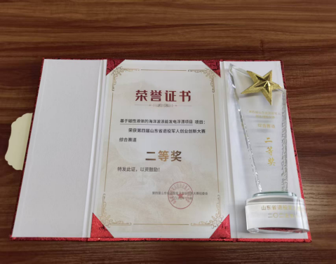 11月19日至20日,第四届山东省退役军人创业创新大赛决赛在滨州市博兴县举行,威海市环翠区军创企业山东众志军创电子科技有限公司,凭借卓越表现,以“基于磁性液体的海洋波浪能发电浮漂项目”取得综合赛道二等奖的优异成绩。