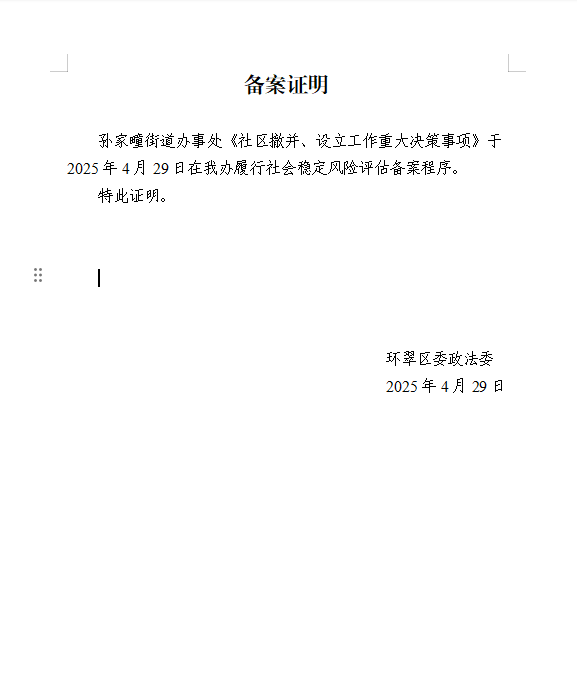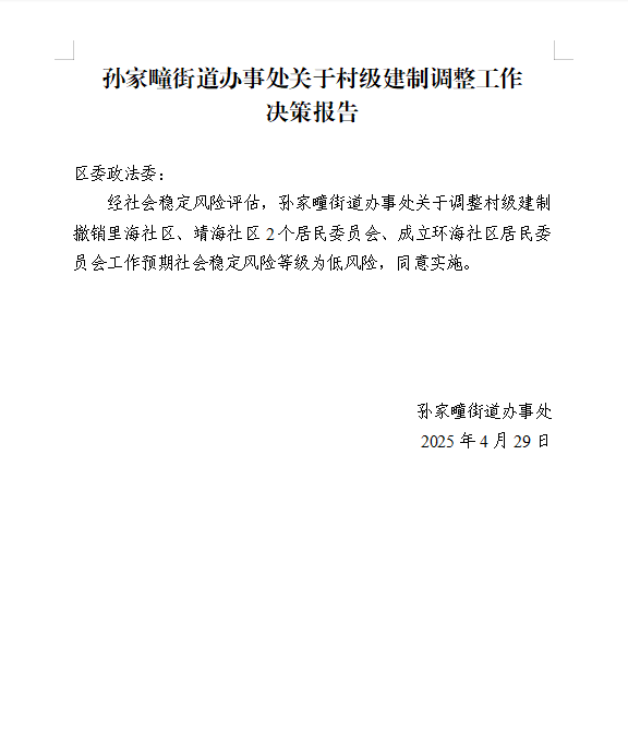 孙家疃街道办事处关于社区撤并、设立方案