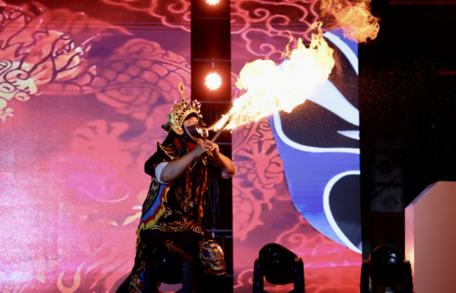 活动现场,14个精心打磨的节目如夏夜星火,将现场气氛点燃,观众用掌声与尖叫,让这个夏夜变得更加炽热。开场舞《领航》以绸缎为笔,舞者们化作跃动的星火,在栖霞街的晚风里书写波澜壮阔的百年征程。当《复兴的力量》的旋律扬起,歌声如红绸穿云,舞者用足尖划出时代的轨迹,台下观众认真跟唱的模样,让红色基因在音符里自然流淌。川剧变脸《惊颜》上演时,现场观众个个全神贯注,扇子翻转间,各式各样的脸谱依次变换,小朋友们都舍不得眨眼;威海龙武堂的少年们演绎《龍武雄风》时,刀光剑影划破夜空,马步稳如磐石的姿态,引得围观群众纷纷叫好。“妈妈你看,那个脸谱会变颜色。”小朋友年年跑到人群前认真张望,小脸上满是笑容。李女士笑着说:“孩子今年两岁半,特意带她过来玩,没想到变脸节目让她着迷成这样,看完一直在说‘变变变’。”人群中退休教师王先生看着格外认真:“已经连续看了好几届纳凉晚会了,今年的《党旗飘扬的方向》最打动我,可以说唱到咱们老党员的心坎上了。”如今,广场纳凉晚会已经连续举办35年,成为环翠区重要的文化品牌活动之一,环翠区文化馆副馆长郑刚表示:“今年,我们为大家准备了歌舞、器乐、戏曲等多种类型的文艺节目,在这炎炎夏日为各个年龄段的市民朋友们奉上精彩的演出。