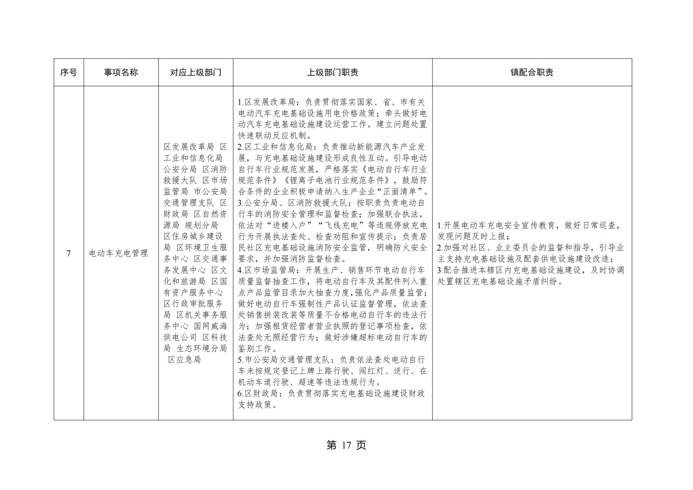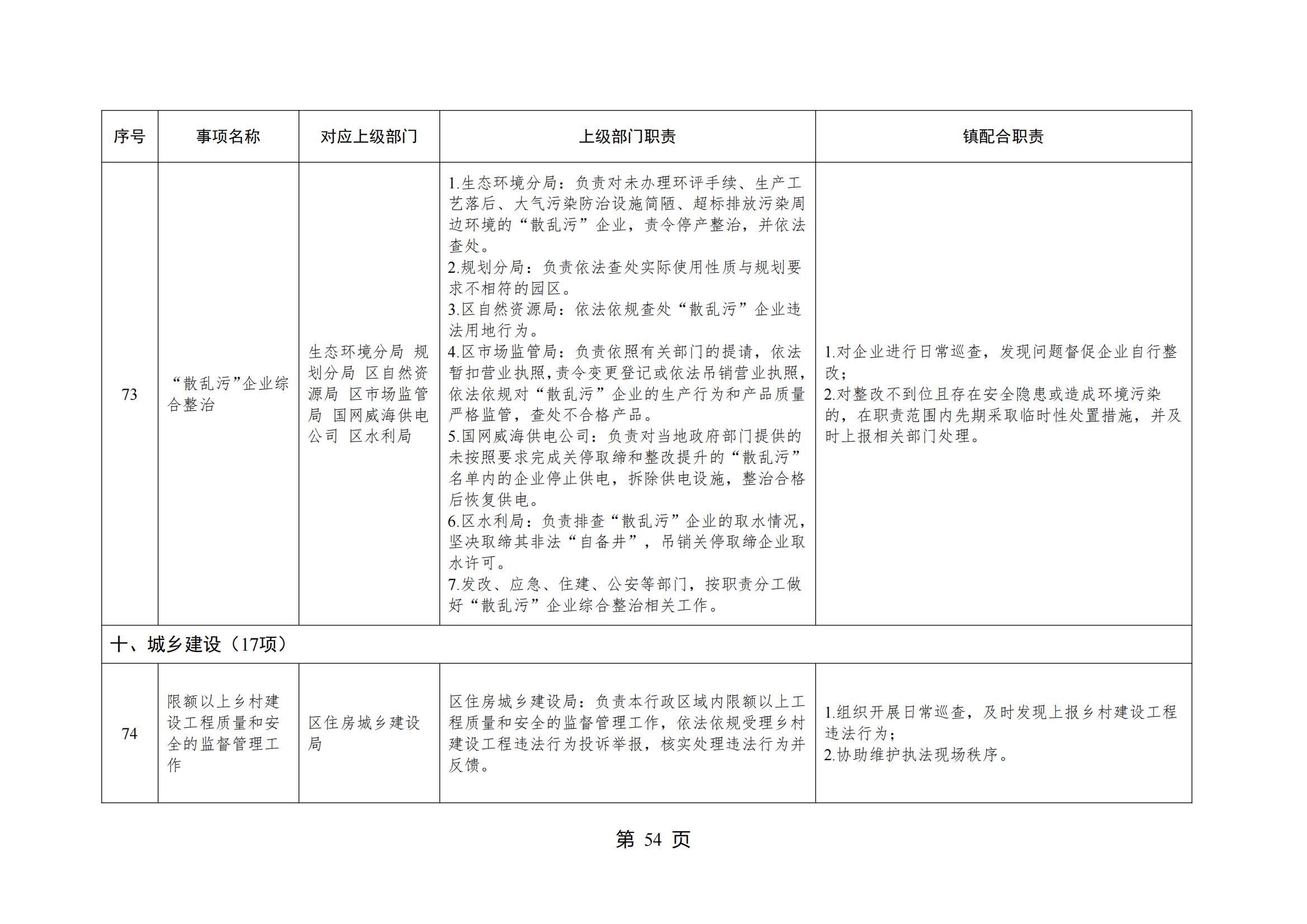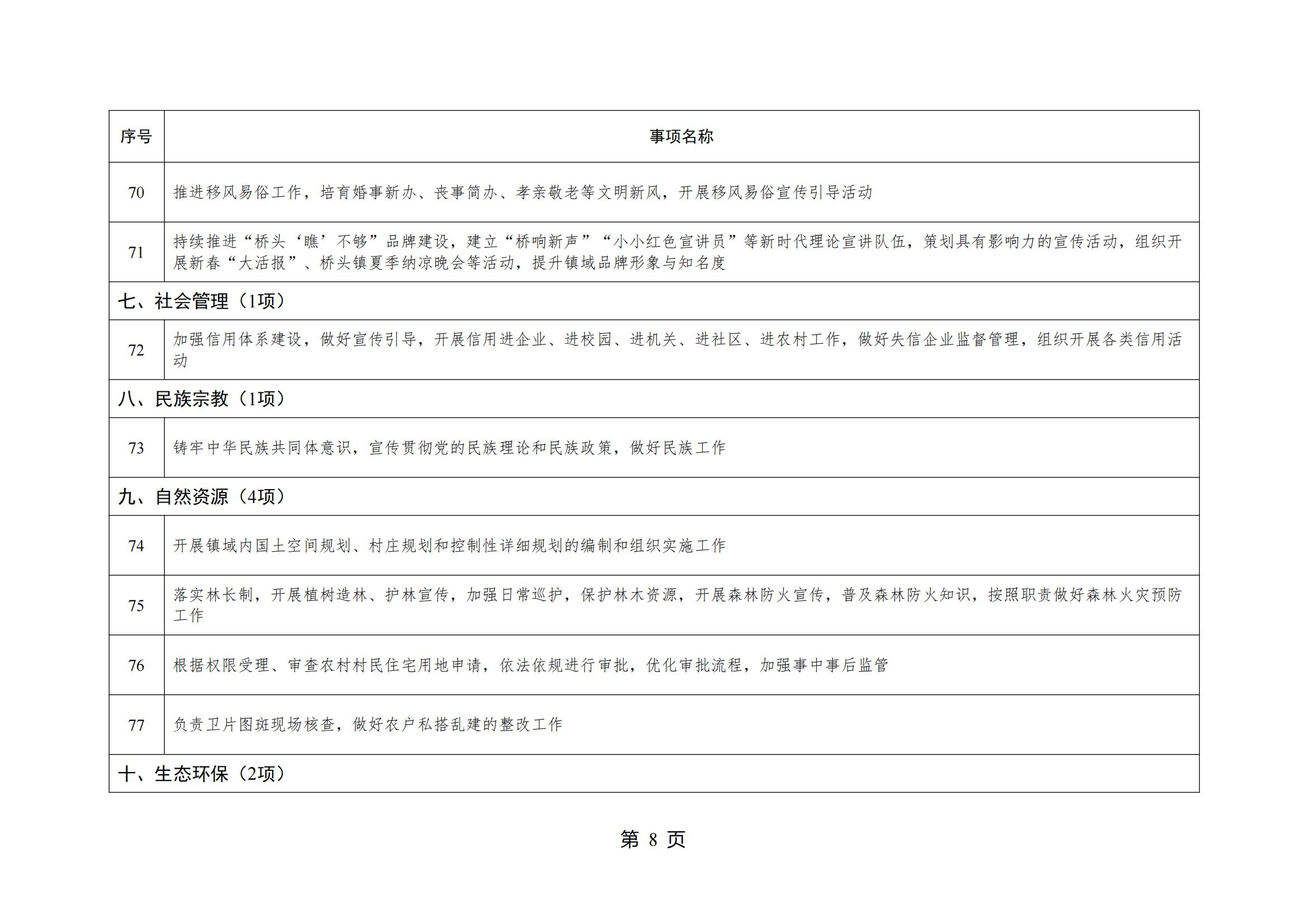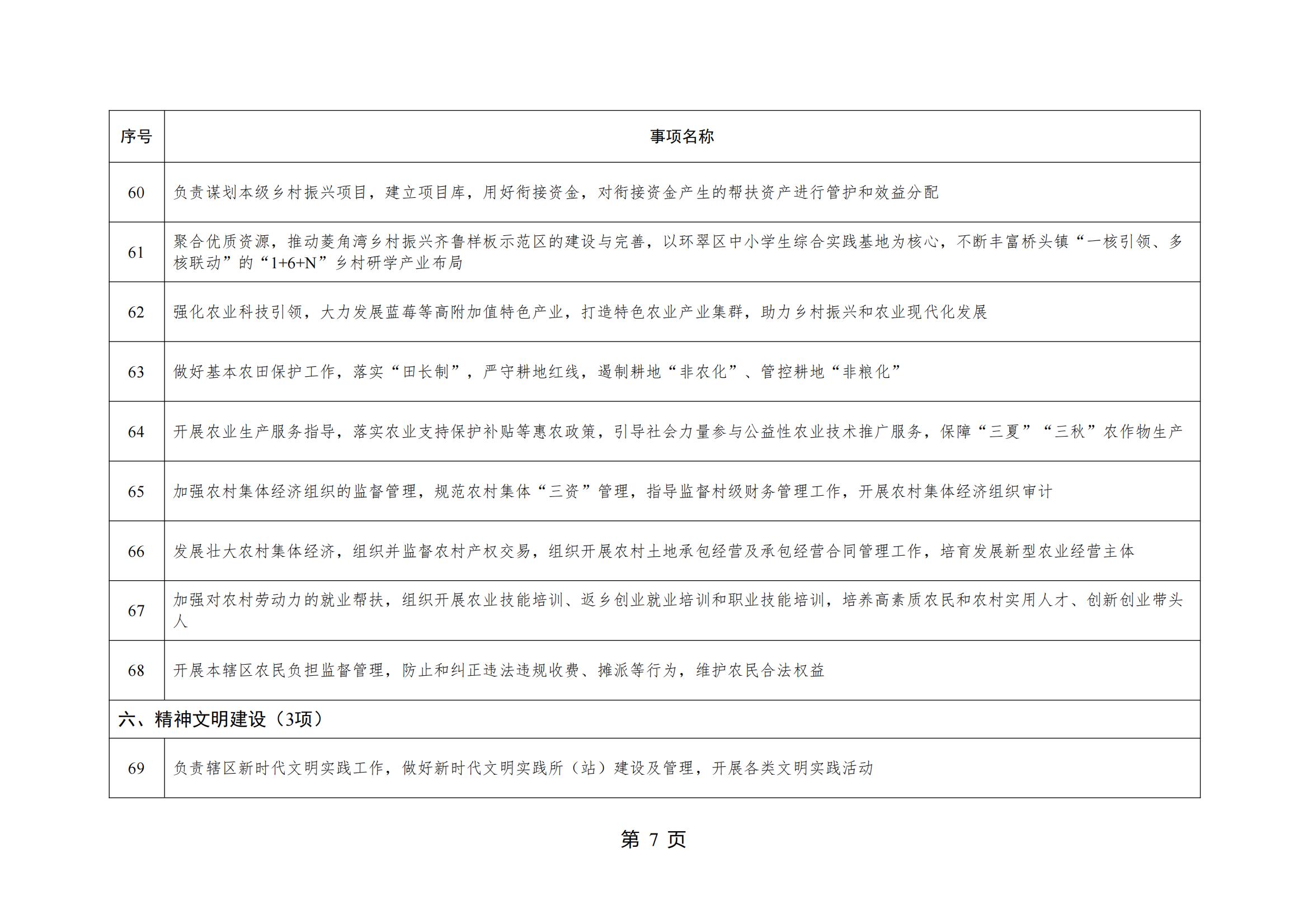 山东省威海市环翠区桥头镇人民政府履行职责事项清单