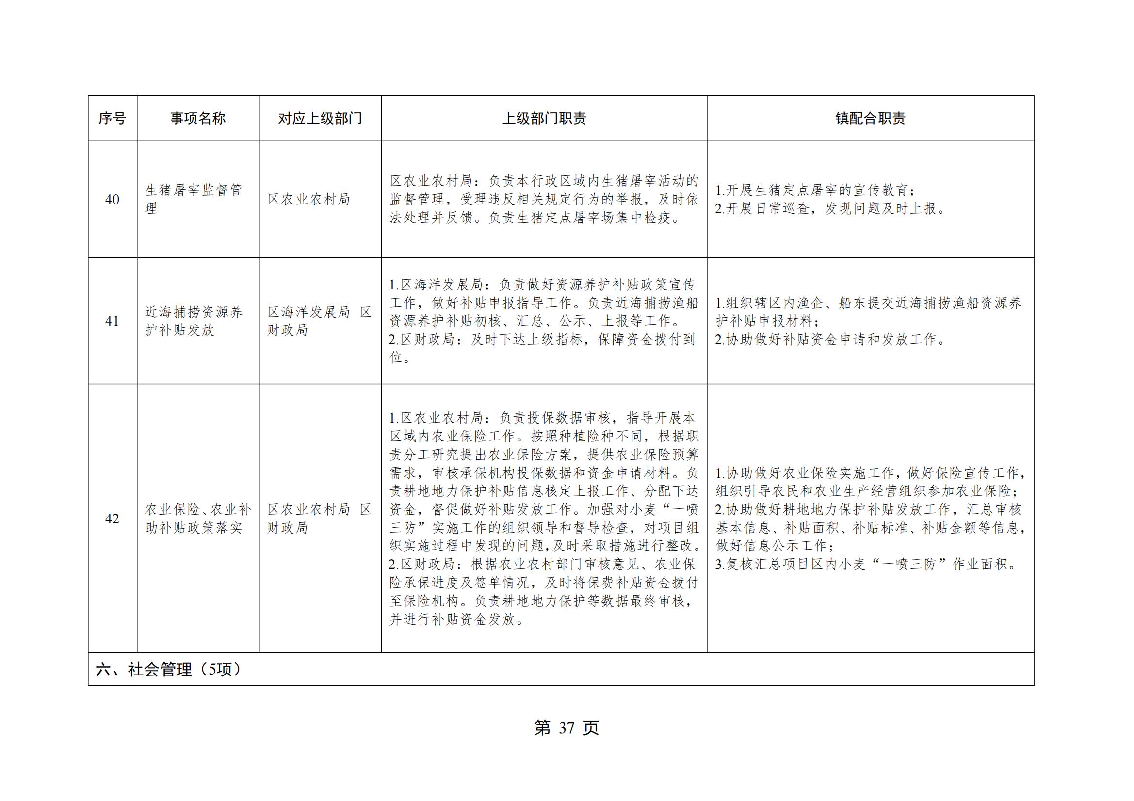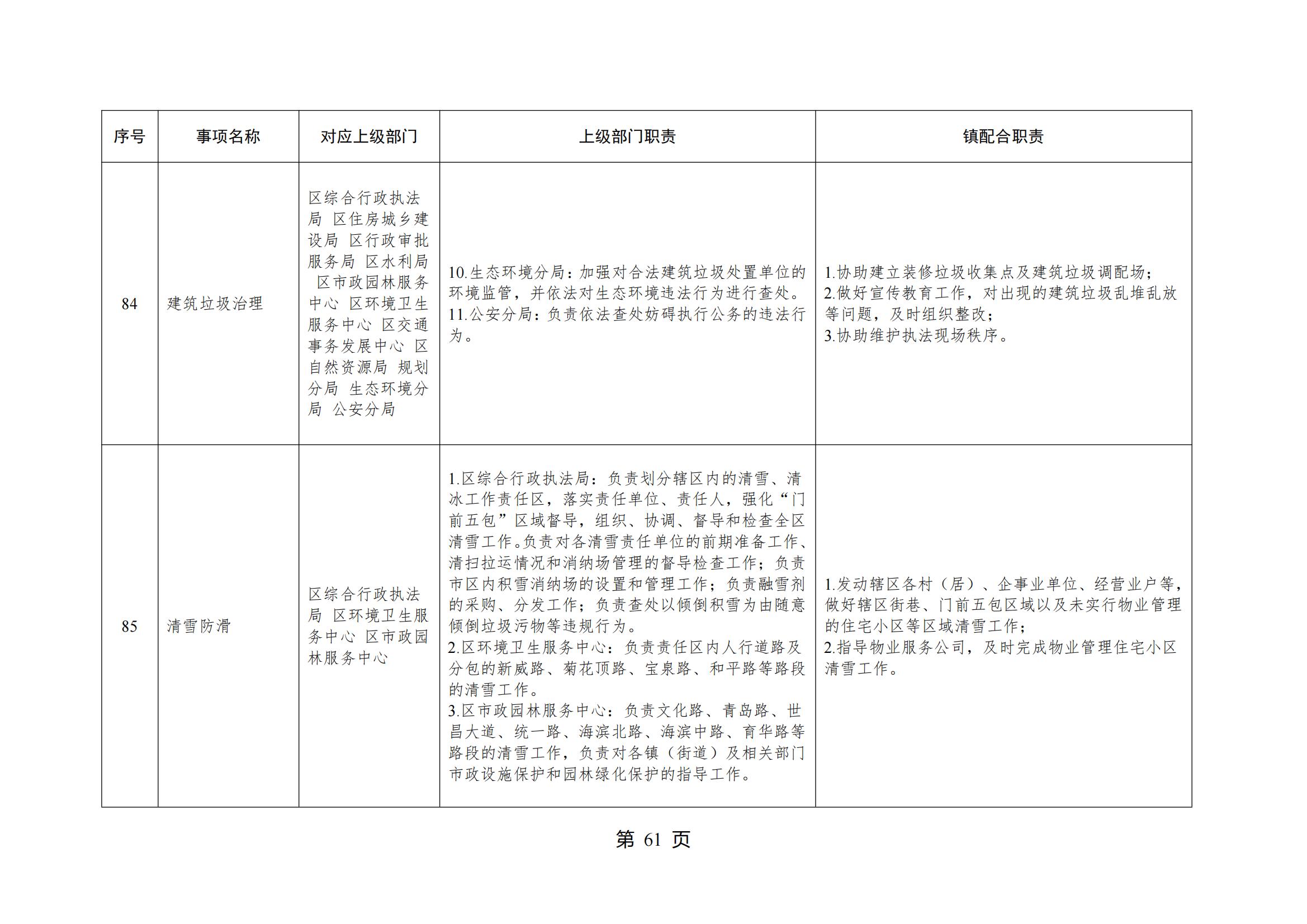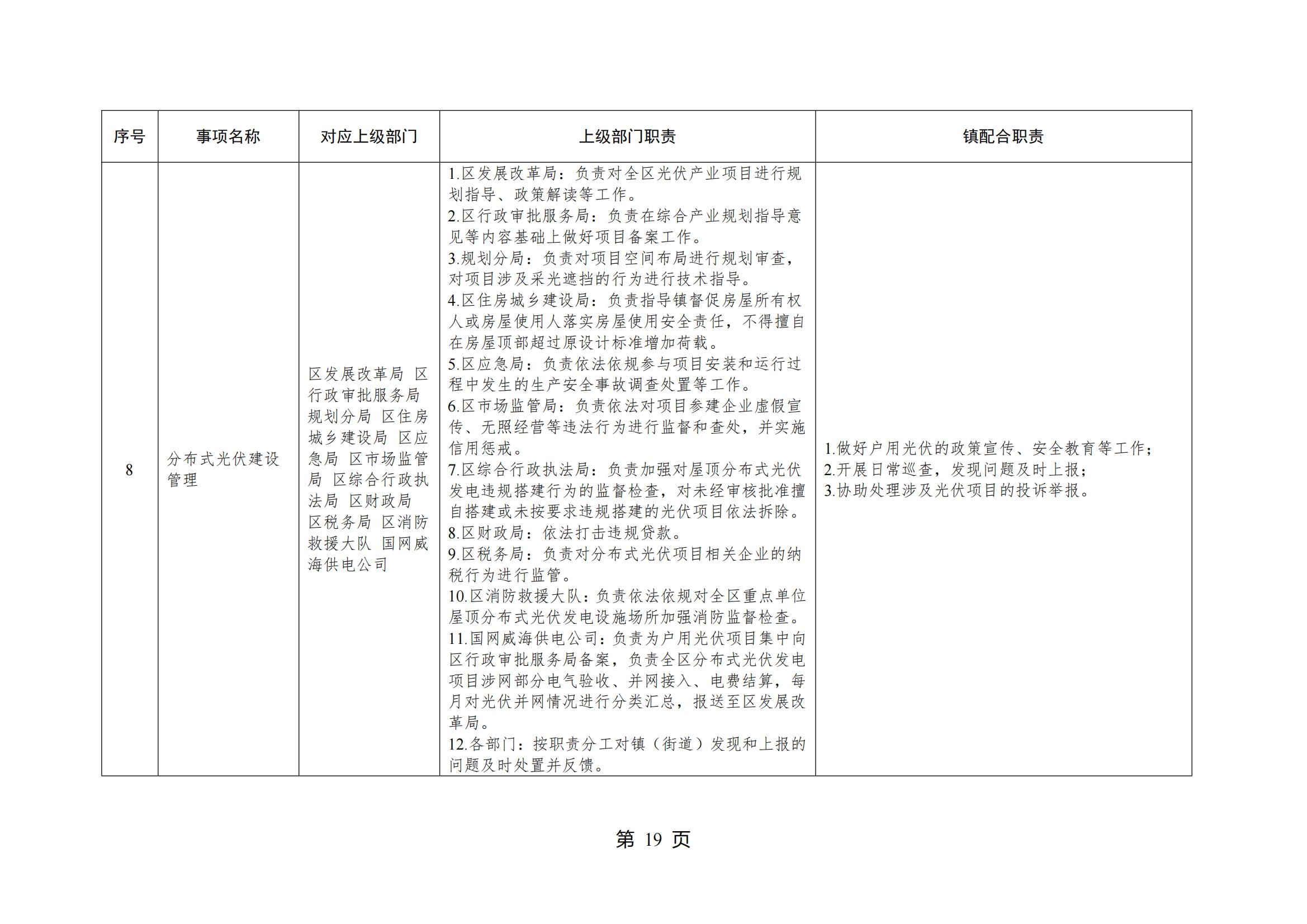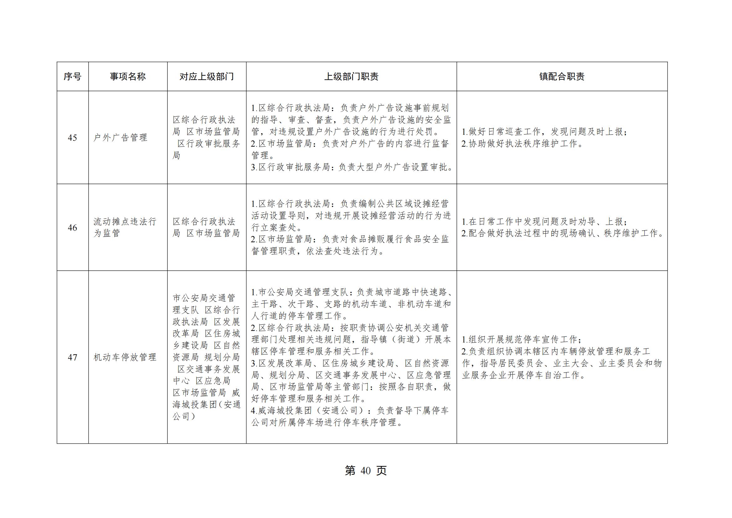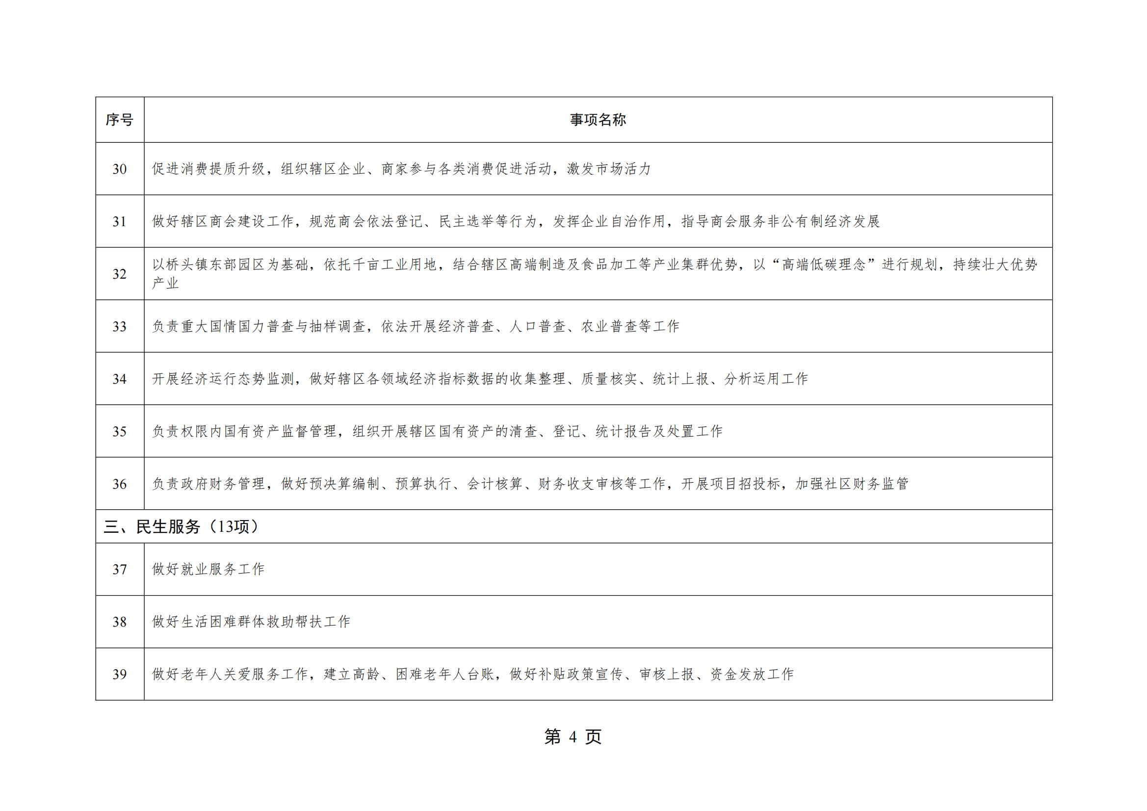 山东省威海市环翠区桥头镇人民政府履行职责事项清单