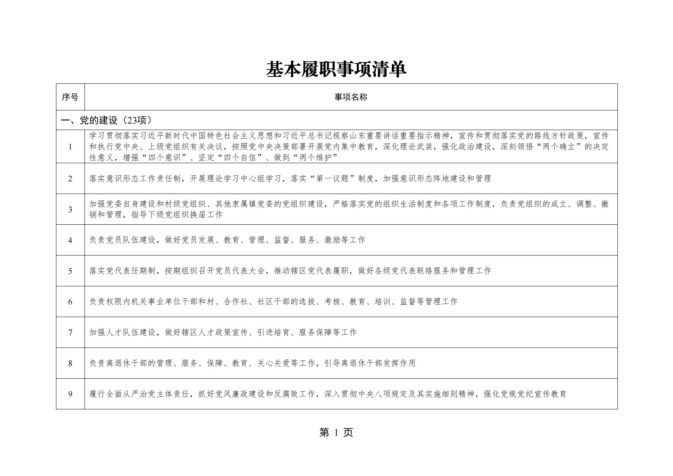 履行职责事项清单