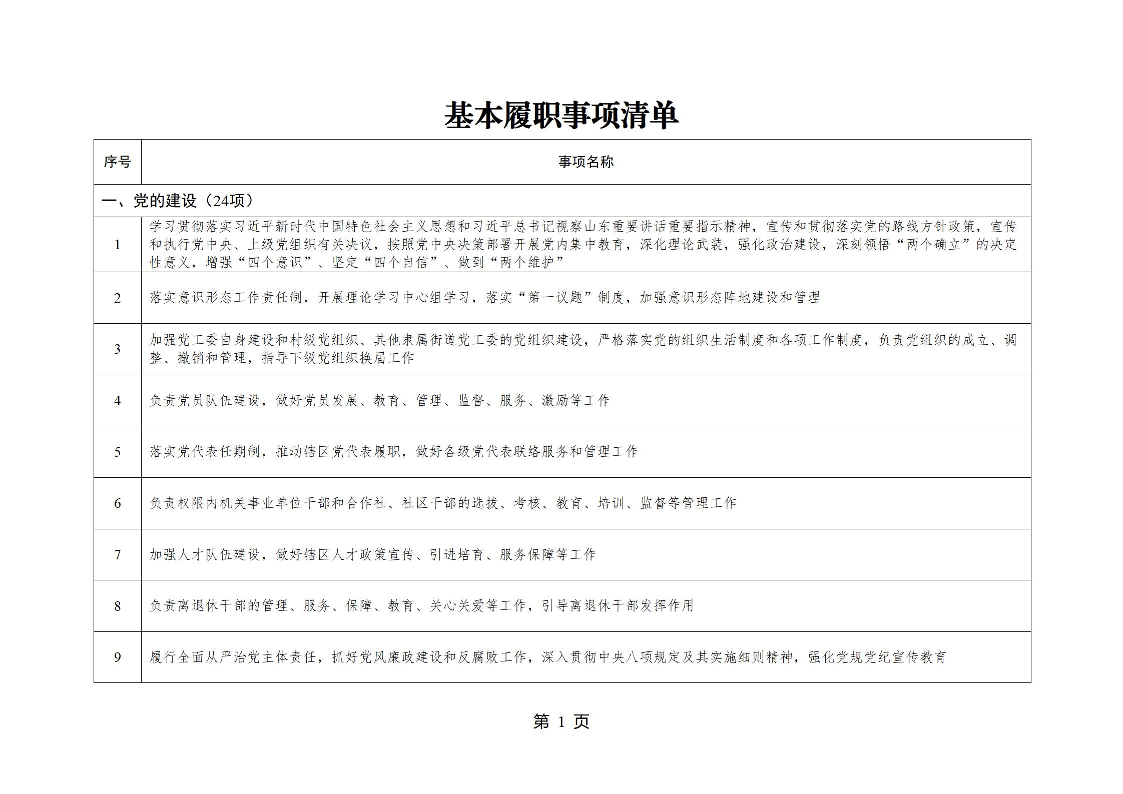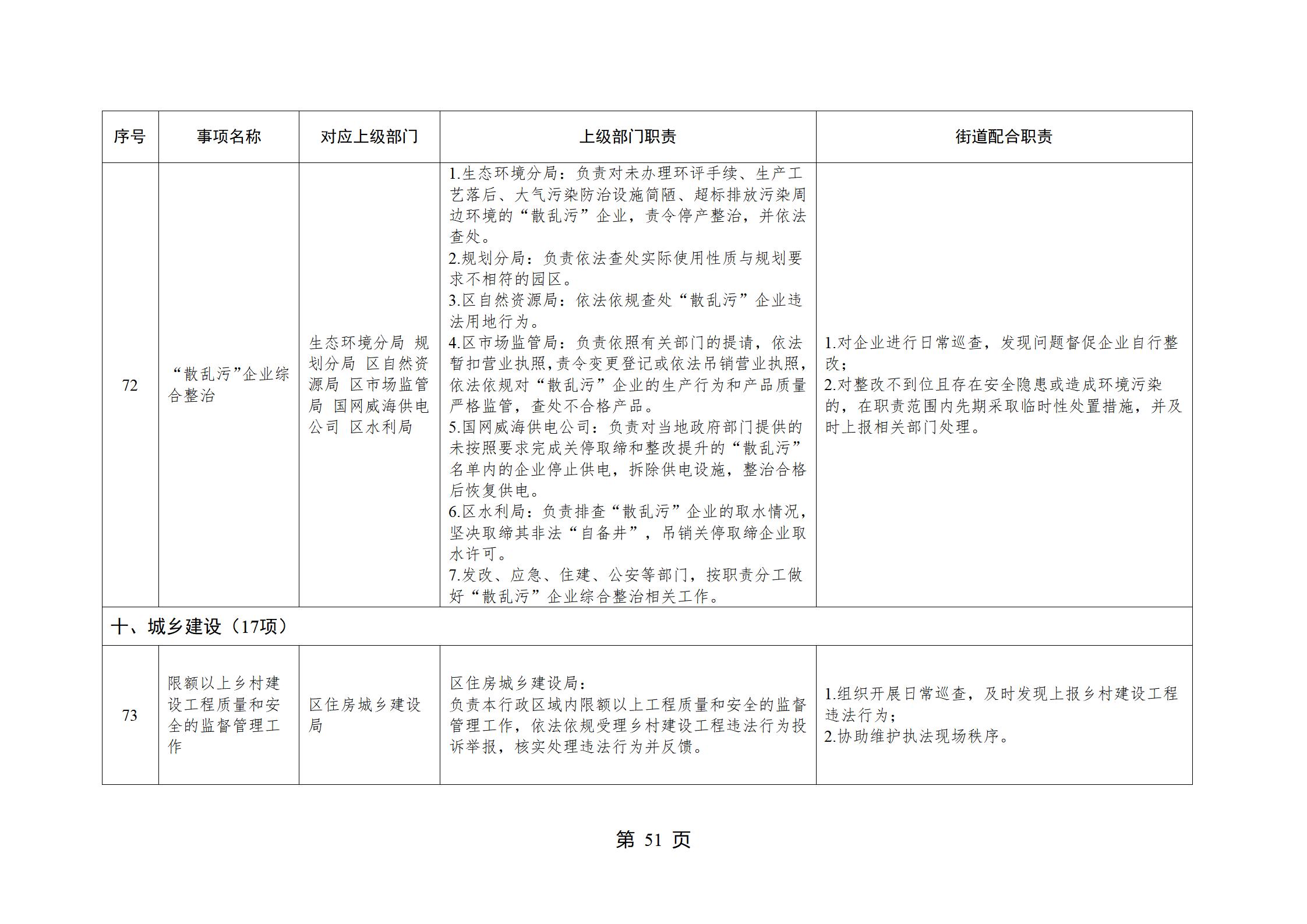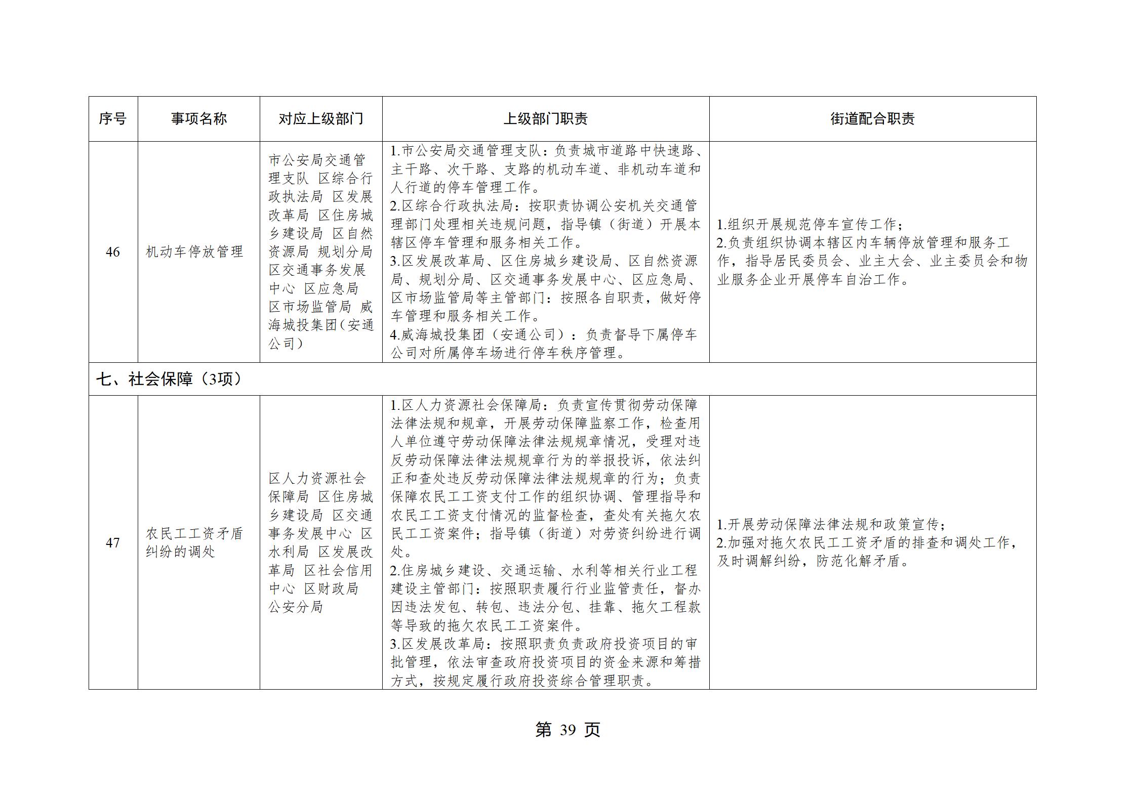 山东省威海市环翠区嵩山街道办事处履行职责事项清单