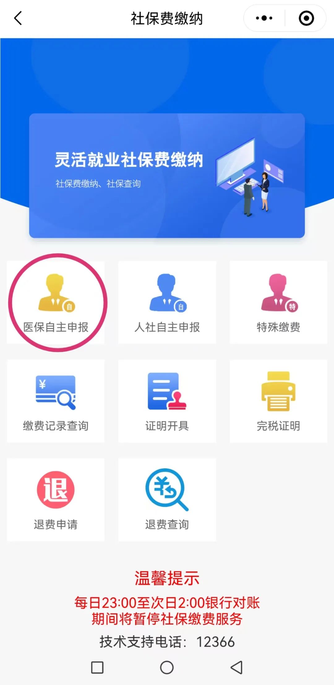 1.选择“灵活就业”—“医保自主申报”;