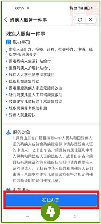 线上在“爱山东”政务服务平台“一件事办理”专区“残疾人服务‘一件事’”模块查询。