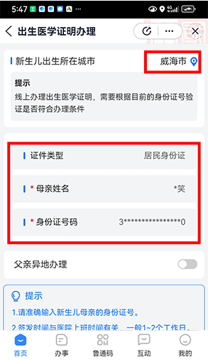 * 通过“爱山东”APP在线办理(仅限新生儿出生不超过三个月)