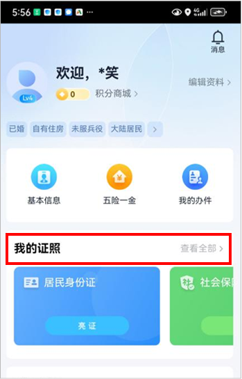 点击“我的”-“我的证照(查看全部)”
