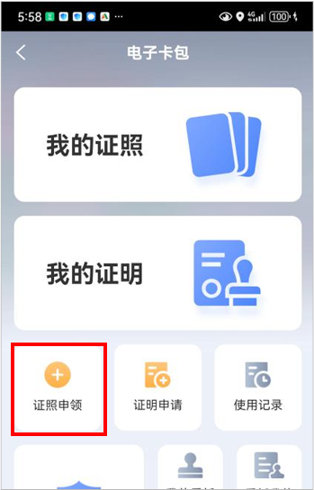 按要求通过人脸识别认证后,点击“证照申领”