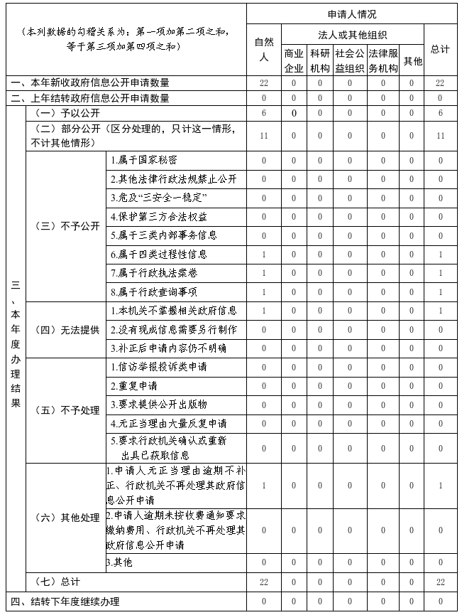 (二)依申请公开。2026年,我局共受理自然人提出的政府信息公开申请22件,较2024年增加8件。申请内容集中在行政处罚决定、执法检查情况、投诉举报处理、法治政府建设等方面,所有申请均按期办结答复。同期收到行政复议申请3件,无行政诉讼案件发生。